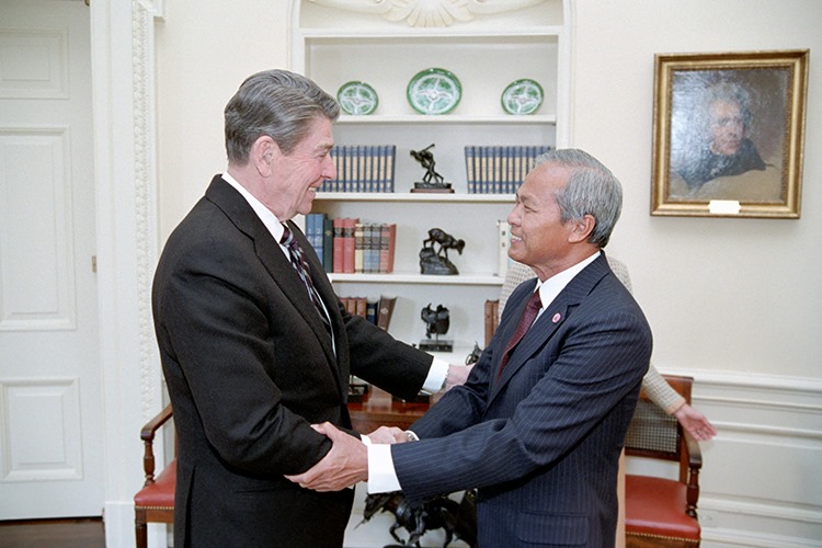 พลเอกเปรม ติณสูลานนท์เข้าพบประธานาธิบดีโรนัลด์ เรแกน ในห้องทำงานรูปไข่ ณ วันที่ 13 เมษายน พ.ศ. 2527