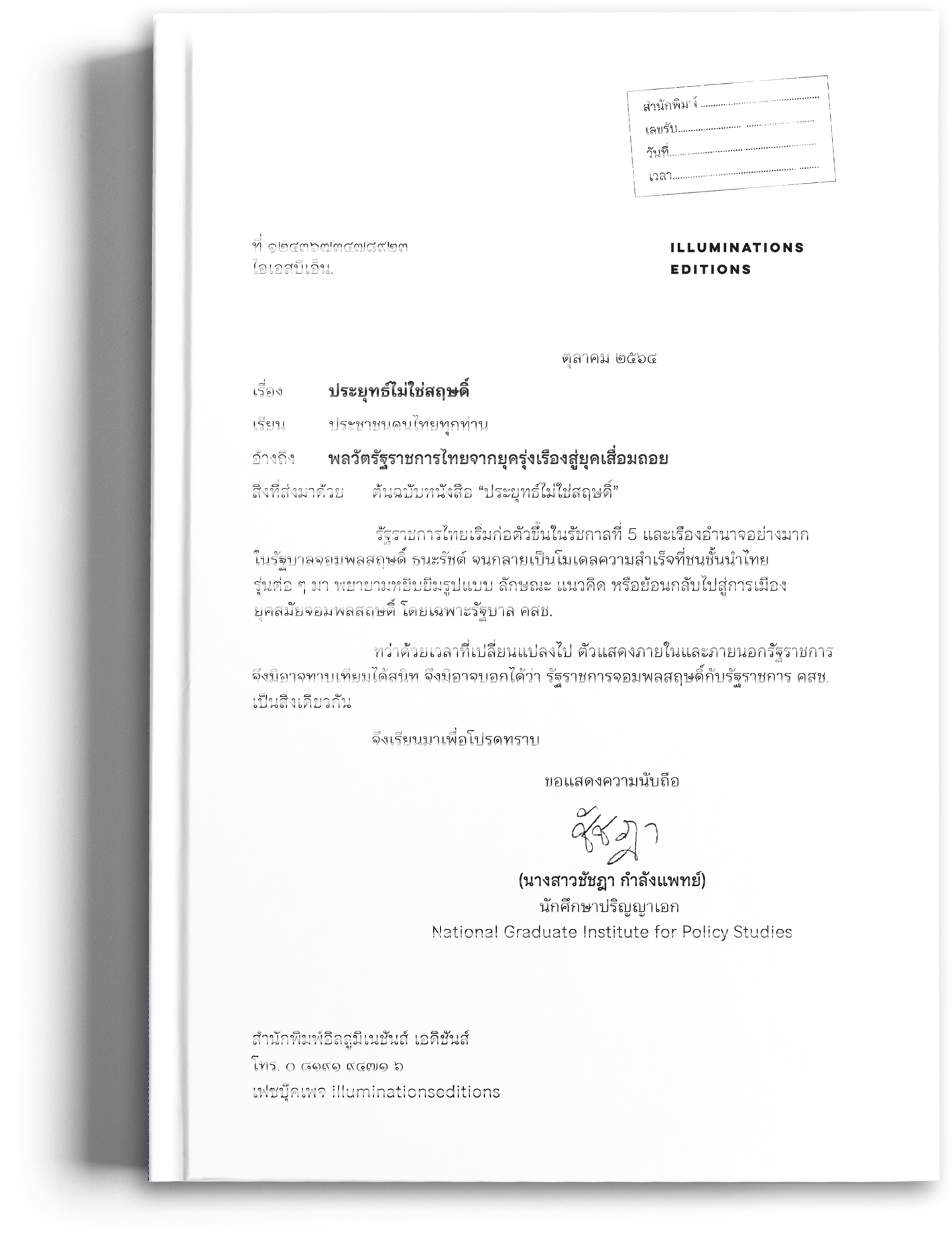 อันที่จริงแล้วเป็นเรื่องปกติที่เราจะกล่าวว่าบุคคลหนึ่งไม่ใช่คนเดียวกันกับบุคคลก่อนที่ดำรงตำแหน่งเดียวกันกับเขาในอดีต แต่ในกรณีของพลเอกประยุทธ์ จันทร์โอชานั้น เป็นไปได้ยากเหลือเกินที่จะพิสูจน์ว่าทั้งตัวเขาและระบอบที่แวดล้อมอยู่รอบตัวเขาไม่ใช่สิ่งเดียวกันที่เกิดขึ้นในสมัยจอมพลสฤษดิ์ ธนะรัชต์ เพราะทั้งนักวิชาการและสื่อมวลชนทั้งในประเทศและต่างประเทศต่างก็นำผู้นำทั้งสองท่านมาเปรียบเทียบกันอยู่บ่อยครั้ง ซึ่งกรณีที่ชัดเจนที่สุดก็คือการที่นิตยสาร Time ได้ให้สมญานามพลเอกประยุทธ์ว่า “Little Sarit” หรือ สฤษดิ์น้อย หากแต่ผลงานของ ชัชฎา กำลังแพทย์ เล่มนี้ได้พิสูจน์ให้ผู้อ่านเข้าใจโดยละเอียดว่าไม่ใช่แค่ประยุทธ์ไม่ใช่สฤษดิ์ เพราะผู้เขียนได้ฉายภาพให้เราเห็นอย่างชัดเจนว่ารัฐราชการ (Bureaucratic State) ที่ก่อร่างสร้างตัวมาตั้งแต่สมัยรัชกาลที่ 5 ได้รุ่งเรืองอำนาจที่สุดในสมัยจอมพลสฤษดิ์ ธนะรัชต์ ย่อมเป็นคนละสิ่งกับรัฐราชการไทยในปัจจุบันภายใต้การนำของพลเอกประยุทธ์ จันทร์โอชา