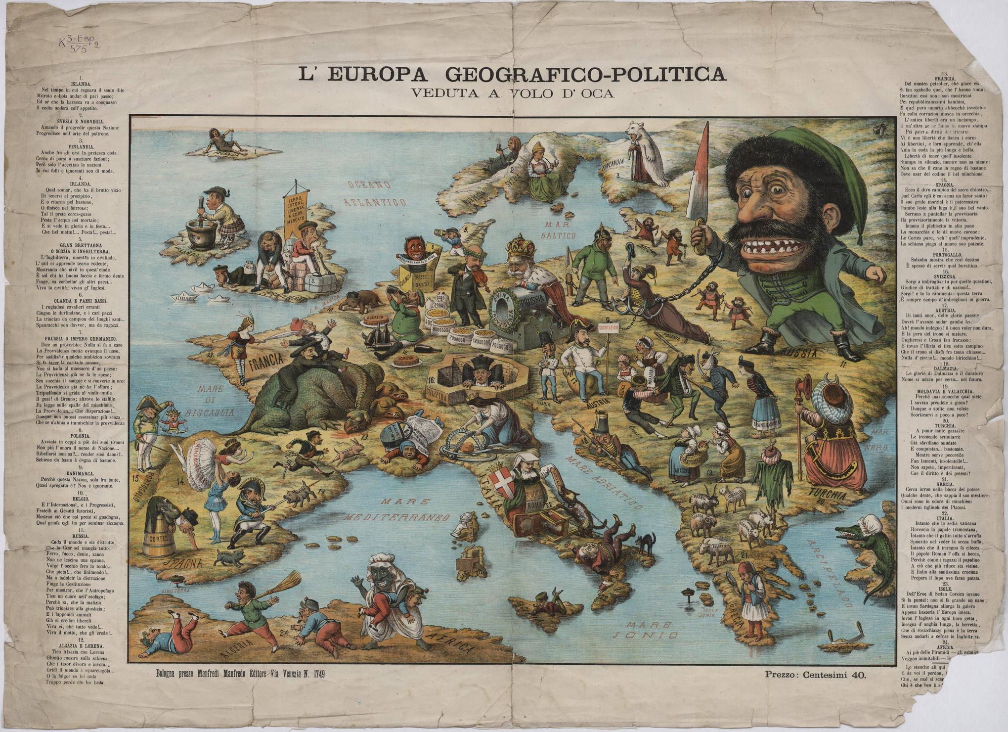 แผนที่ล้อเลียนการเมืองระหว่างประเทศในยุโรปช่วงศตวรรษที่ 19 (ที่มา)