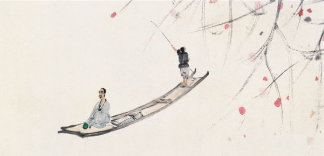 รูปที่ 5 ภาพวาด คนถ่อเรือผู้ฝึกฝน “อู๋เหวย” (การไม่กระทำ)